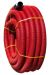 Tubo UltraTP-I ligero rojo para canalizaciones enterradas con sección circular doble capa. Suministro del tubo con manguitos para el acoplamiento de los tubos. Tubo curvable de polietileno. Manguitos de polipropileno y polietileno. Con guía interior de poliamida para el paso de cables.