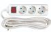 Base múltiple con 3 tomas TT blancas, cable de 2 m e interruptor integrado, ideal para ampliar puntos de conexión eléctrica en hogares y oficinas con instalación rápida y segura.