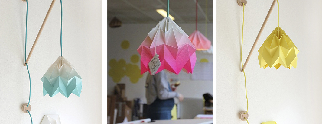 5. Completa la magia de una lámpara de origami gracias al cable decorativo. Las páginas de venta de artesanía están llenas de ellas, fabricadas de forma artesanal, y nos encantan para decorar cualquier espacio.