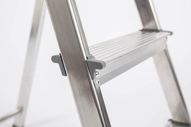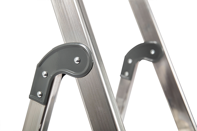 - Materiales de calidad: largueros laterales y tubos transversales en aluminio soldado. Peldaños y rellano en extrusión de aluminio. Rellano de aluminio conformado en frío. Bisagras de acero estampado en frío y lacadas. Componentes plásticos en polietileno de alta y baja densidad.
