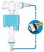 Flotador universal tanque bajo. Entrada racor latón 3/8. Boya regulable en altura. Adaptable a cisternas con entrada vertical o lateral. Boya protegida con sistema que evita que se interrumpa el recorrido del cierre.