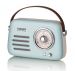 Radio estilo retro con excelente calidad de sonido y tecnología de audio moderna gracias a que ofrece múltiples opciones de reproducción: conexión Bluetooth, USB, AUX y radio FM/AM. Batería con 12 horas de duración en función radio y Bluetooth de 6h. Altavoz de 3" con salida de 5 W y amplificador de 3 W. Antena telescópica de 35 cm. Frecuencia de radio FM (87,5 - 108 Mhz) Batería integrada, se carga mediante cable USB-C (incluido)