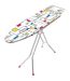 Tabla de planchar con soporte de plancha de doble posición en chapa. Sistema progresivo de regulación de altura de 60 a 90 cm. Patas de tubo reforzado de 19 mm. Funda de algodón 70% con acolchado de espuma.